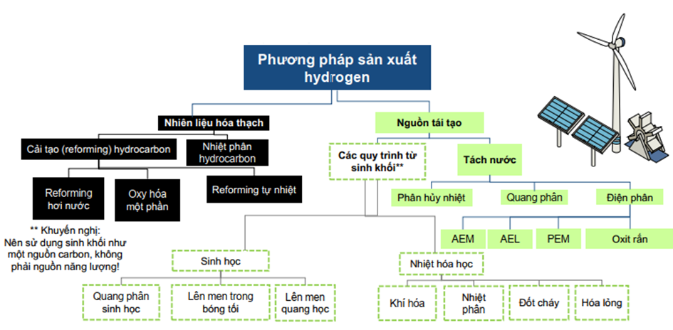 Hydrogen được tạo ra từ quá trình đốt cháy than đá, khí đốt, các chất được phân hủy sinh học… Bên cạnh đó, Hydrogen được tạo ra từ các nguồn năng lượng sạch như: Gió, ánh nắng mặt trời, nước…