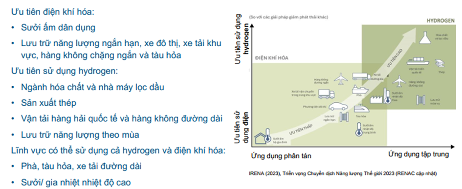 Xác định ưu tiên các trường hợp sử dụng hydrogen so với điện khí hóa trong các lĩnh vực khác nhau